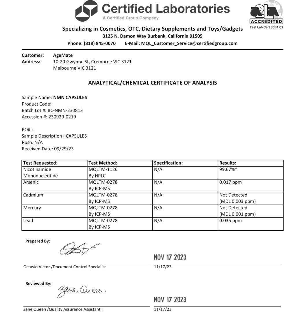 NMN has been consumed for 10+ years globally with almost no adverse side effects being reported. Recent studies are now showing the real, tangible benefits of NMN consumption as we age.